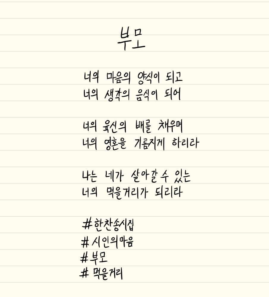 #한찬송시집 #시인의마음 #먹을거리#부모