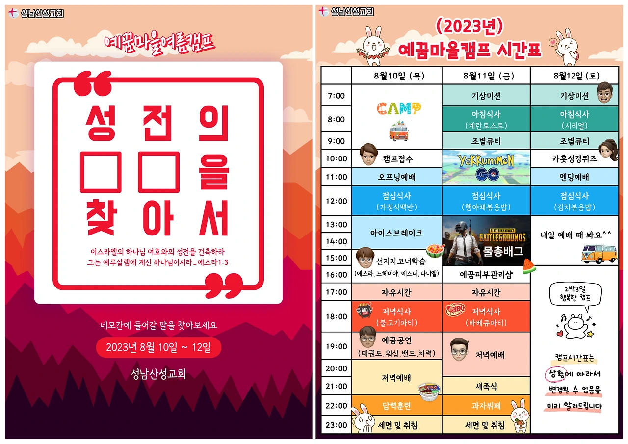 #한찬송 #인생샷 #릴레이기도회 #예꿈마을 #여름캠프