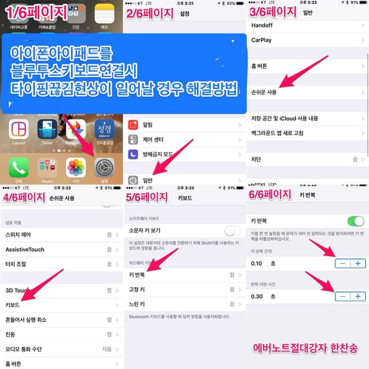 아이폰이나 아이패드에서 블루투스키보드 연결시 끊김현상이 일어날 경우 문제 해결방법입니다^^#아이폰 #아이패드 #에버노트 #블루투스키보드#끊김현상 #해결방법 #에버노트절대강자 #한찬송