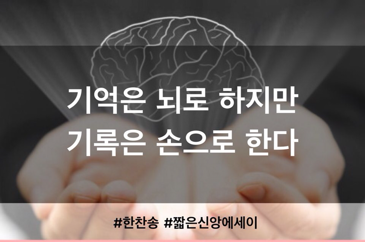 #기억은뇌로 #기록은손으로#손으로기록해야뇌에기억된다#중요한정보를뇌에입력하는방법#장기기억으로기억하는방법#기록하는수밖에없다#글과사진과영상으로기록하자#한찬송 #짧은신앙에세이 #에버노트절대강자