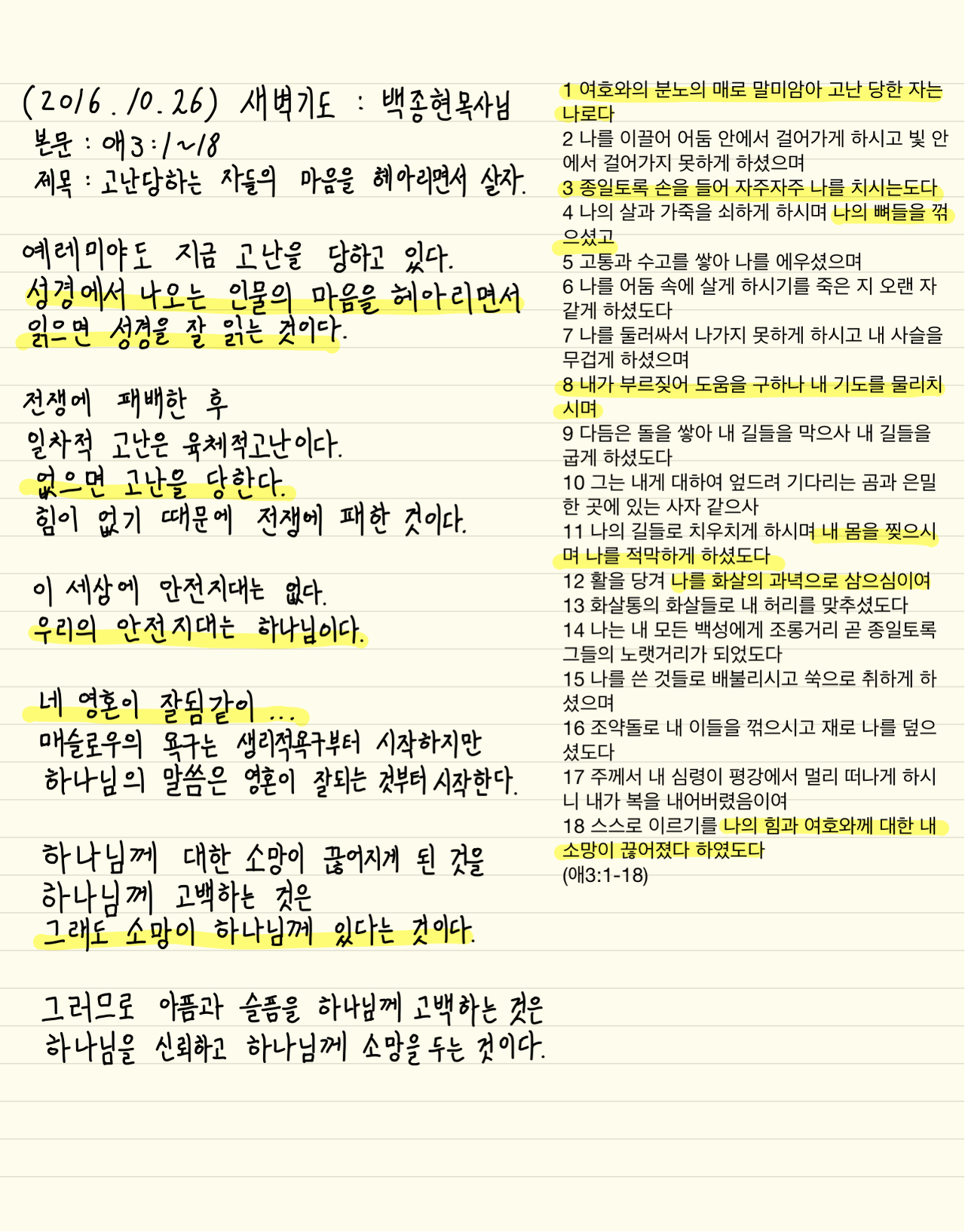(2016.10.26) 고난당하는 자들의 마음을 헤아리면서 살자 : 백종현목사님 #설교노트 #백종현목사 #고난당하는자들의마음을헤아리면서살자 #애3장 #대은교회#아이패드프로 #애플펜슬 #GoodNote #새벽기도