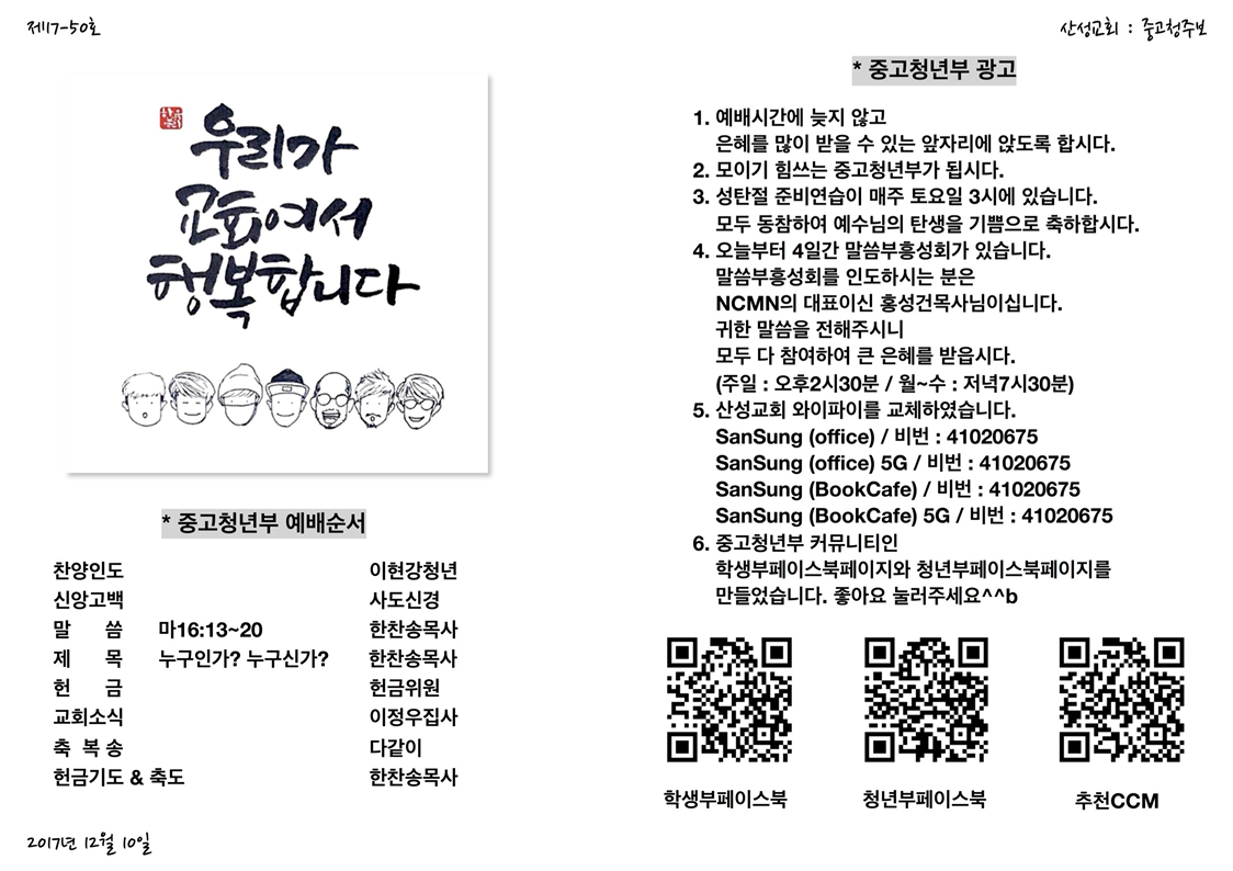 #산성교회중고청예배주보 #2017년12월10일