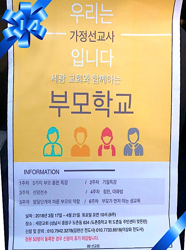 #성남산성교회 #부모학교 #가정선교사#신앙전수 #IM선교회 #세광교회 #3월17일시작 #6주과정 #한찬송