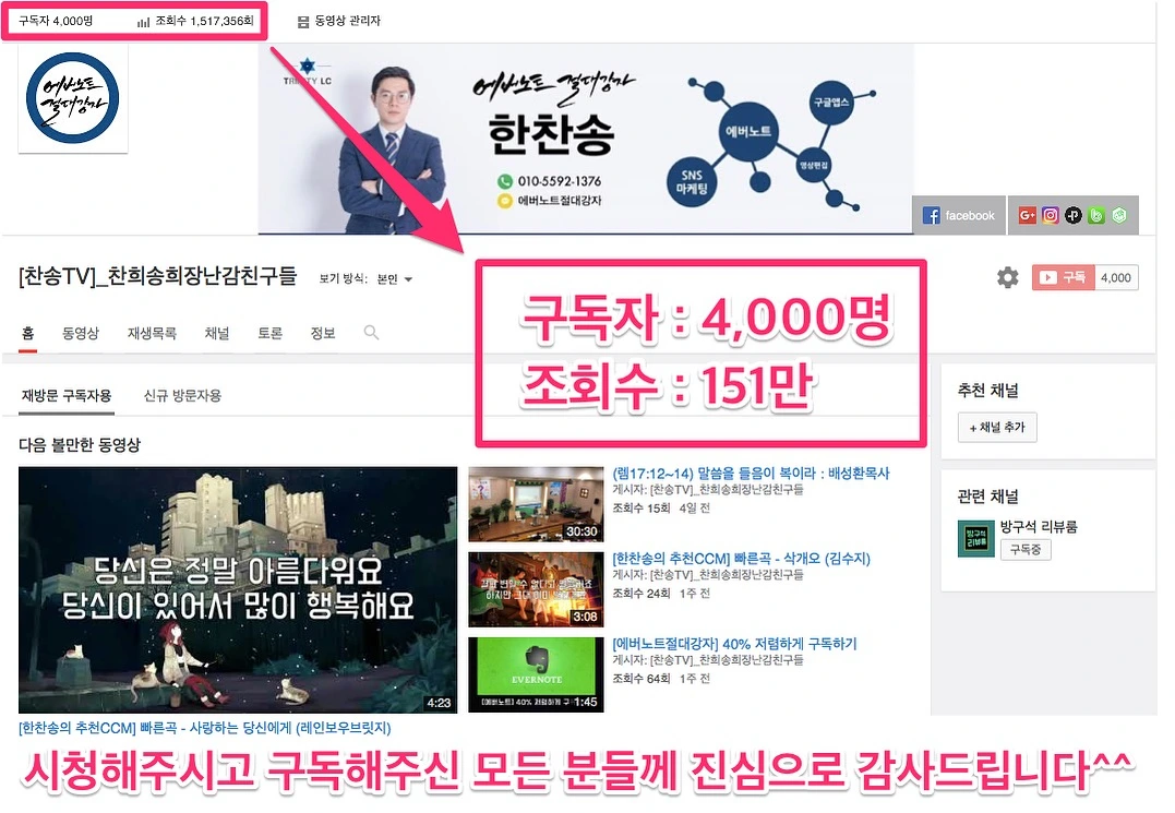 [에버노트절대강자] 유투브 구독자 4000명달성!^^