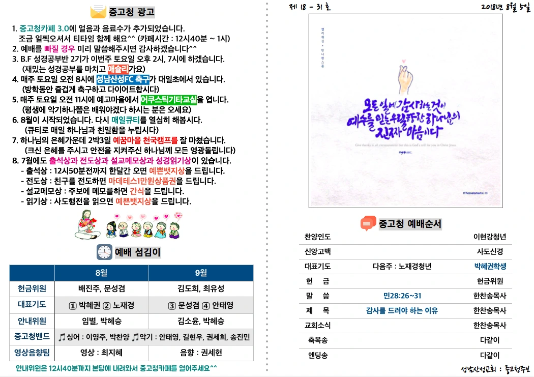 #성남산성교회 #중고청예배주보
