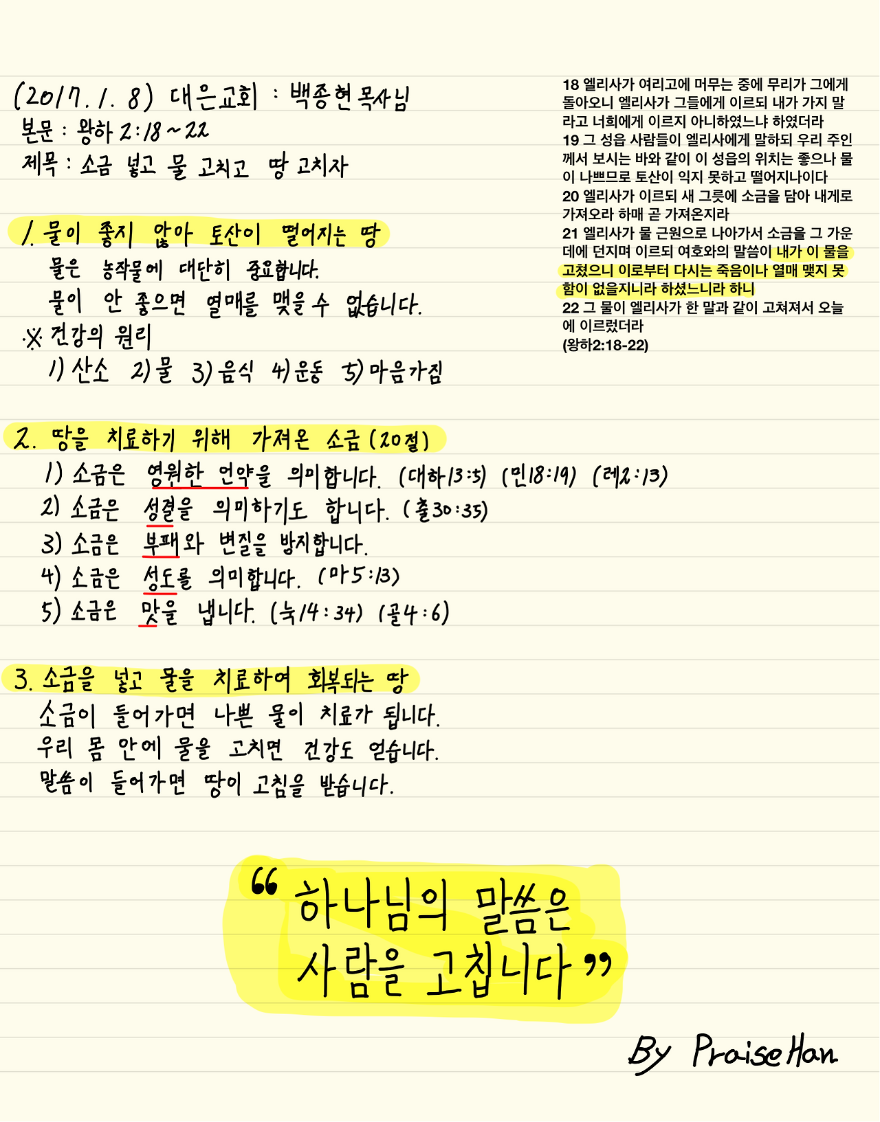 #설교노트 #왕하2장 #소금넣고물고치고땅고치자