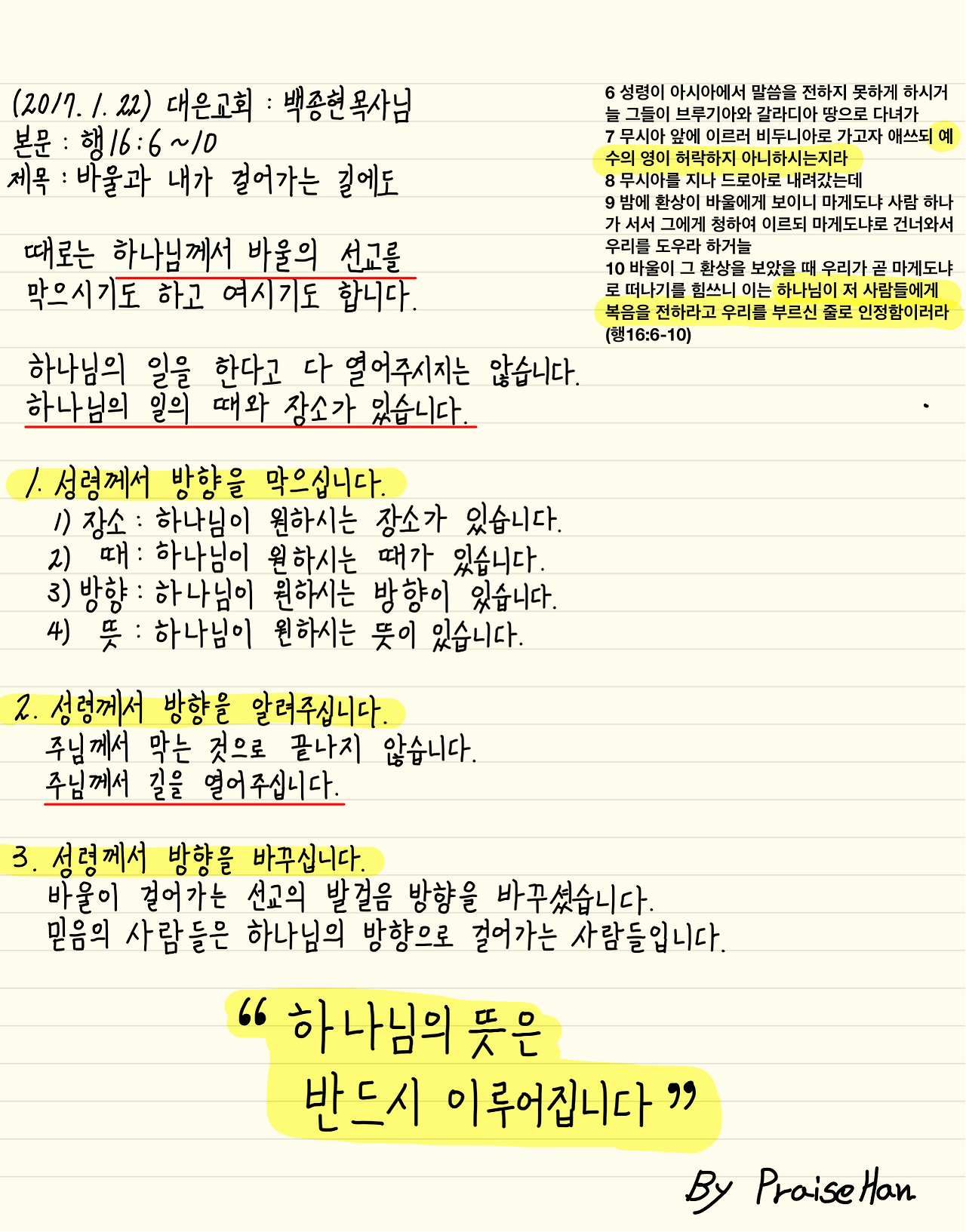 #설교노트 #행16장 #바울과내가걸어가는길에도
