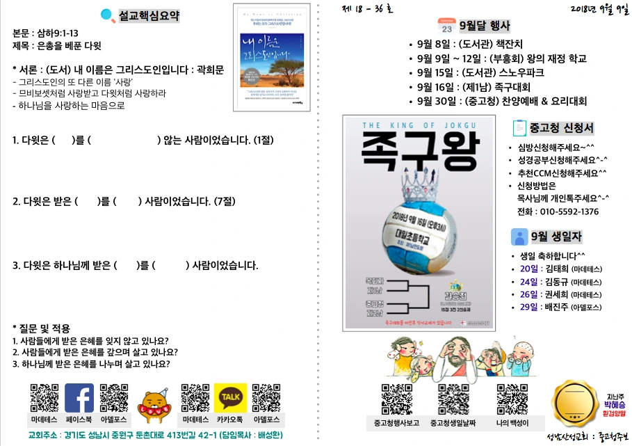 - 므비보셋처럼 사랑받고 다윗처럼 사랑하라.