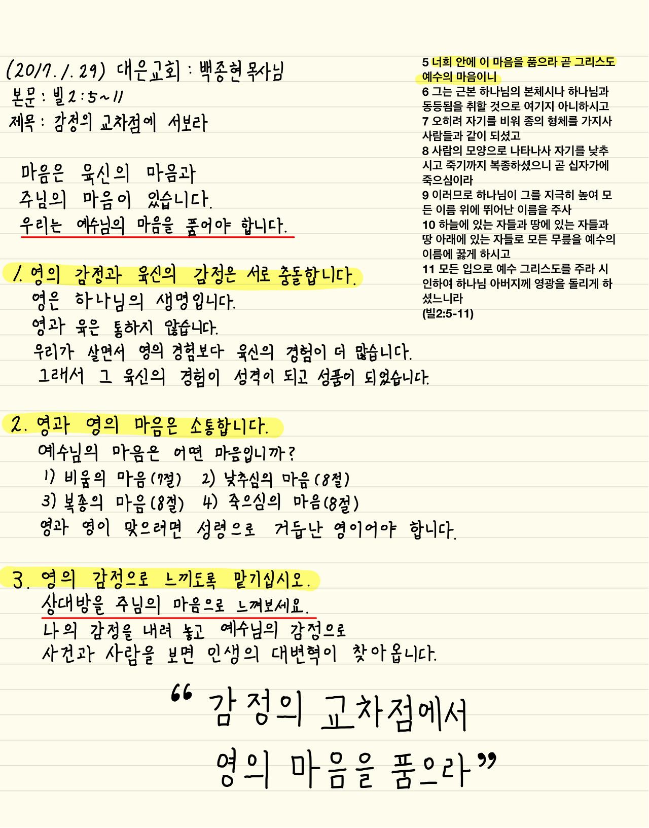 [설교노트] 감정의 교차점에 서보라 : 백종현목사님