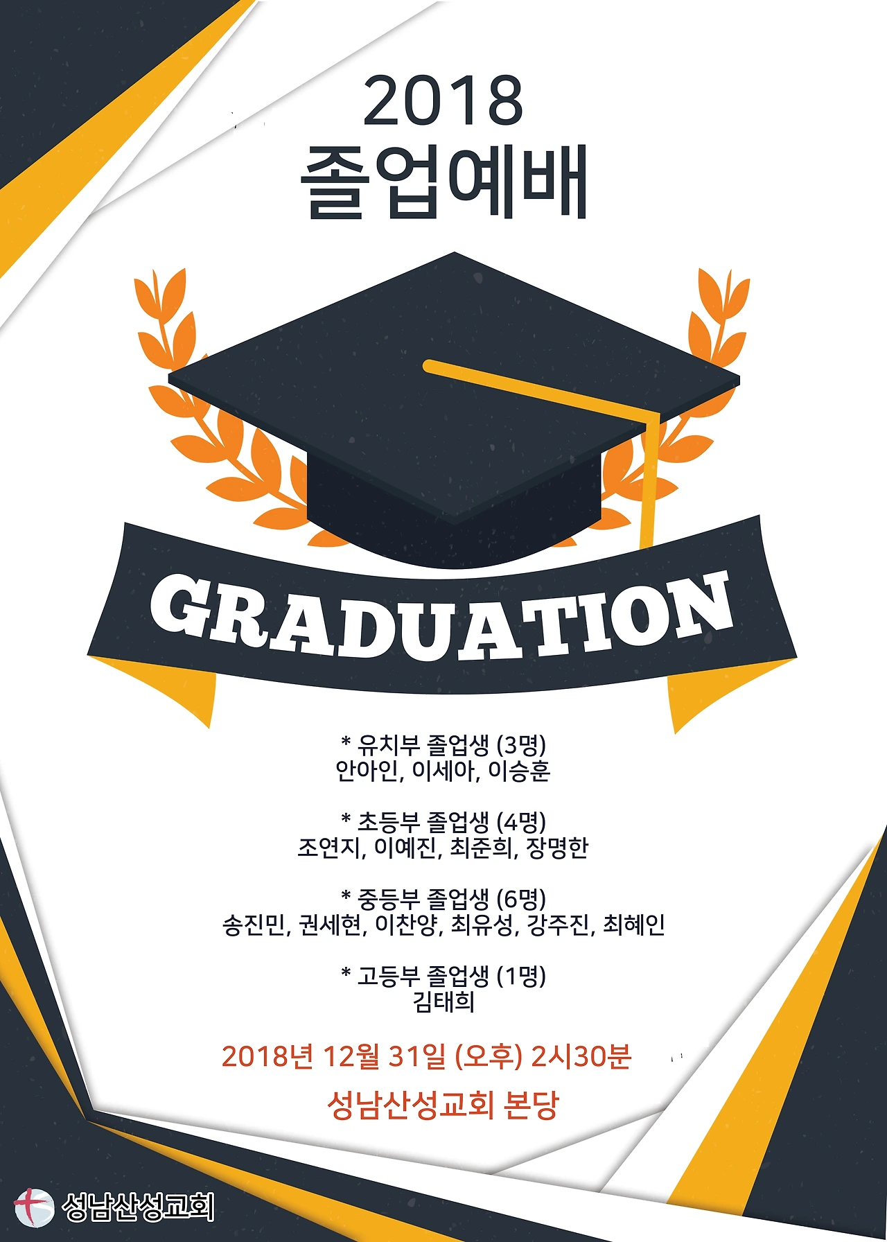 #성남산성교회 #2018년 #졸업예배 #교회학교 #유치부 #안아인 #이세아 #이승훈#초등부 #조연지 #이예진 #최준희 #장명한#중등부 #송진민 #권세현 #이찬양 #최유성 #강주진 #최혜인#고등부 #김태희#한찬송