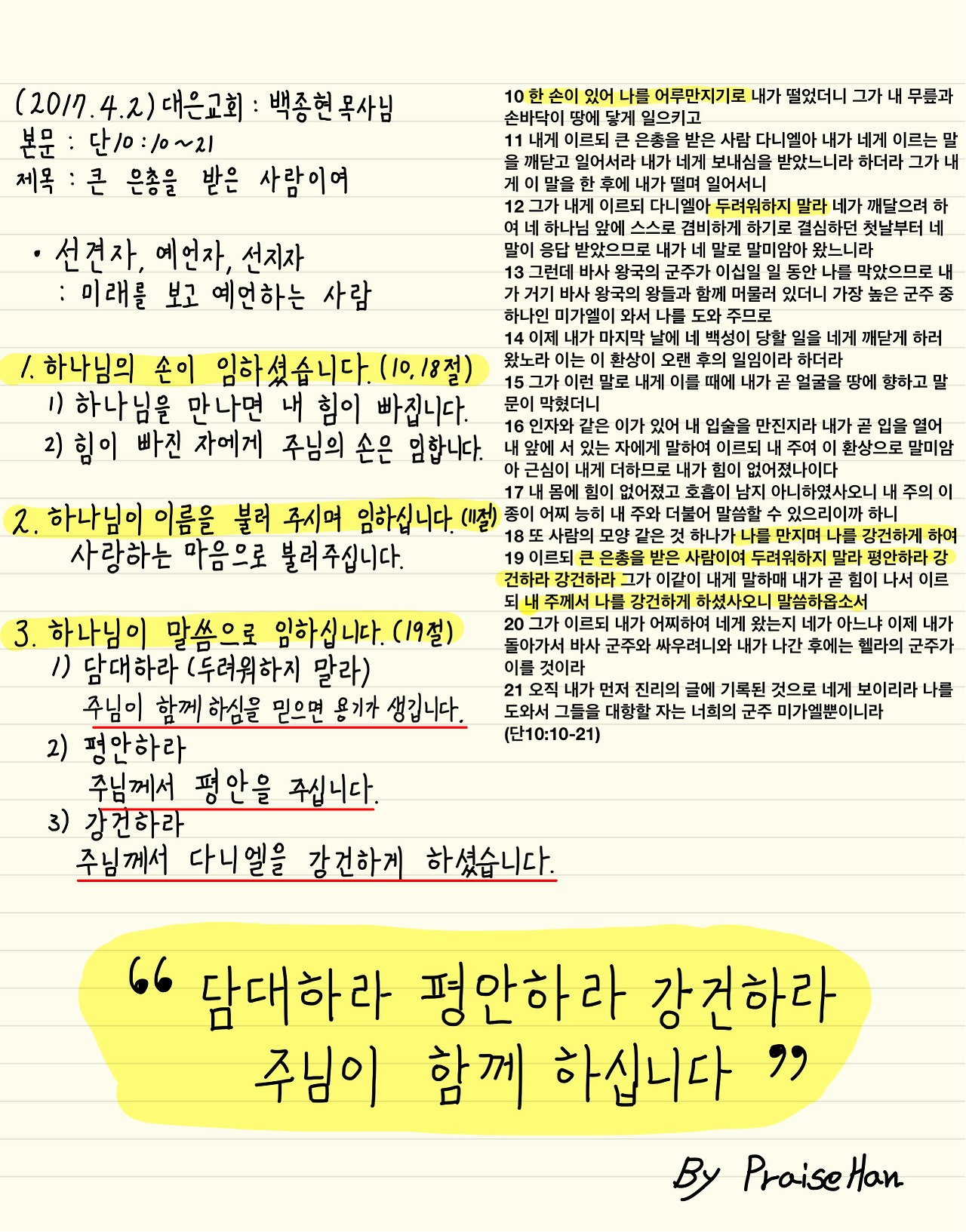 #설교노트 #단10장 #큰은총을받은사람이여#백종현목사님 #한찬송 #강도사 #대은교회#아이패드 #애플펜슬 #GoodNote어플
