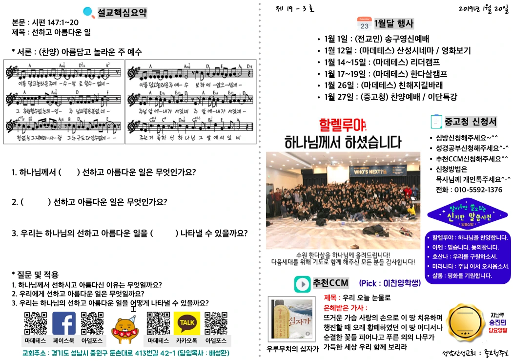 1. 하나님께서 행하신 선하고 아름다운 일은 무엇인가요?