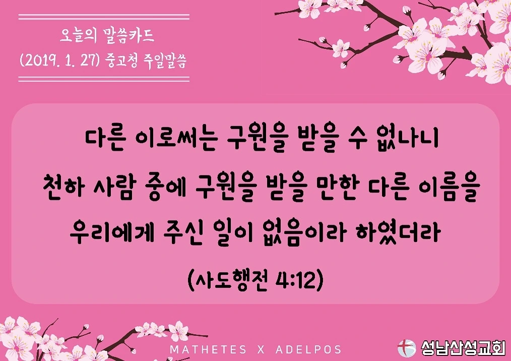 #성남산성교회 #중고청예배주보 #2019년1월27일