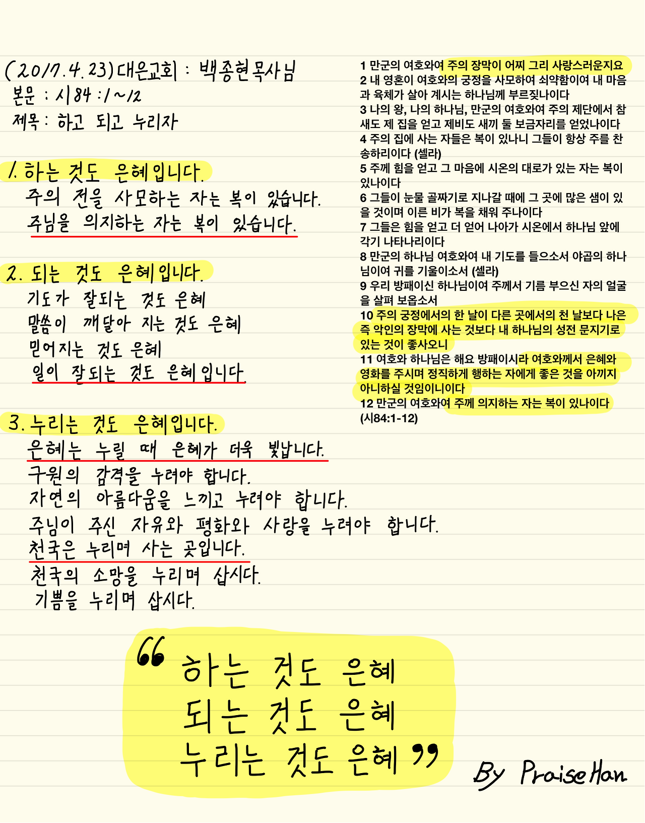 #설교노트 #시84장 #하고되고누리자
