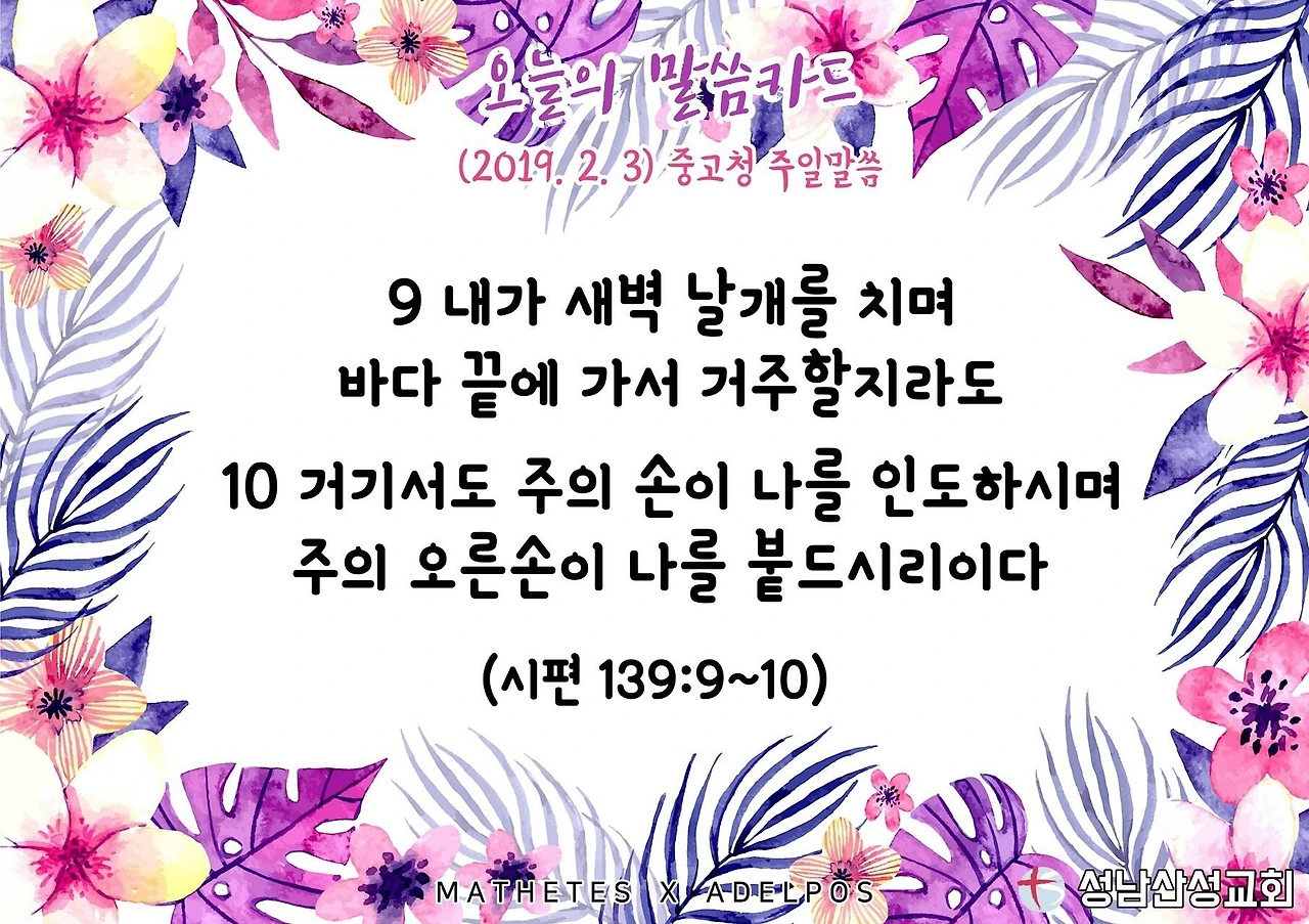 #오늘의말씀카드 #성남산성교회 #2019년2월10일 #