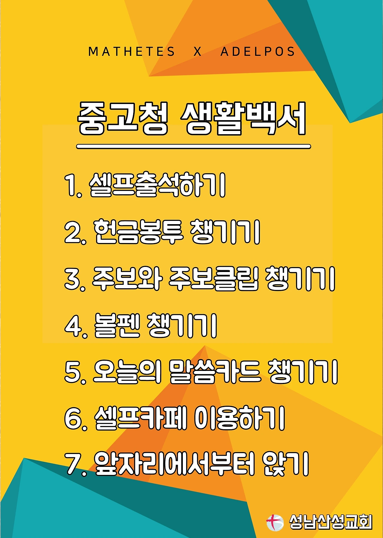 #성남산성교회 #중고청 #안내위원 #생활백서 #마데테스