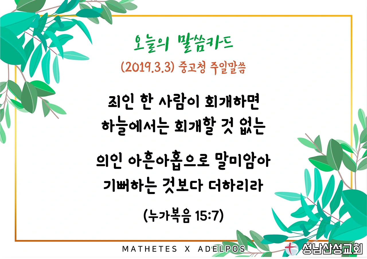 #오늘의말씀카드 #성남산성교회 #2019년3월3일 #누