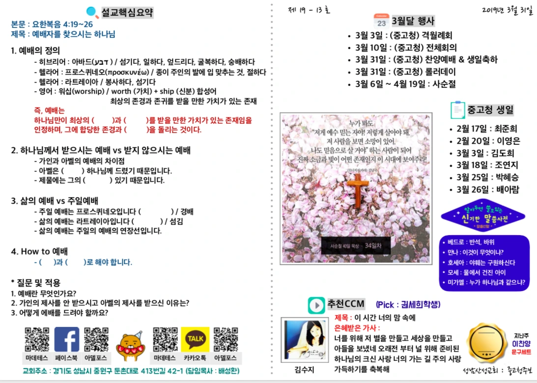 #성남산성교회 #중고청예배주보