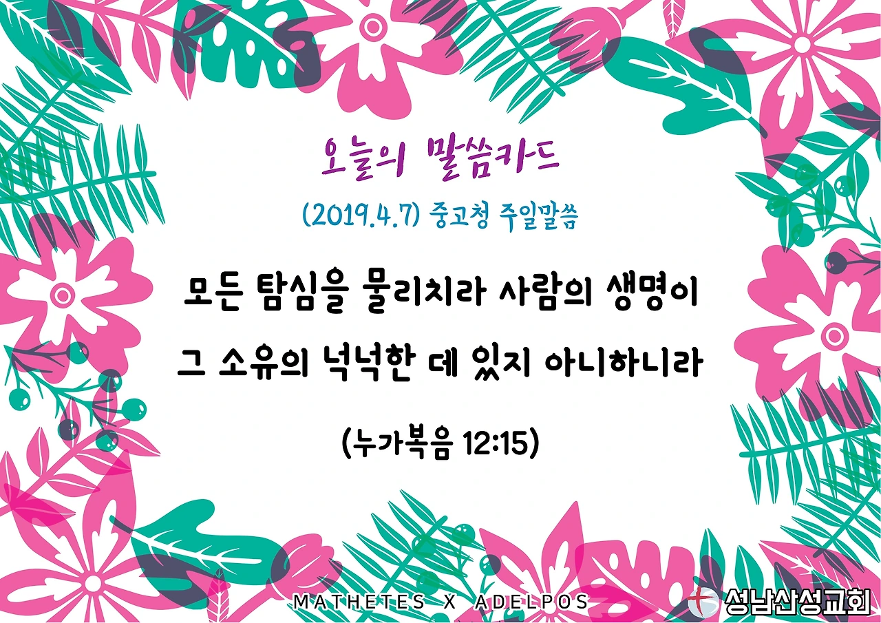 #오늘의말씀카드 #성남산성교회 #2019년4월7일 #누