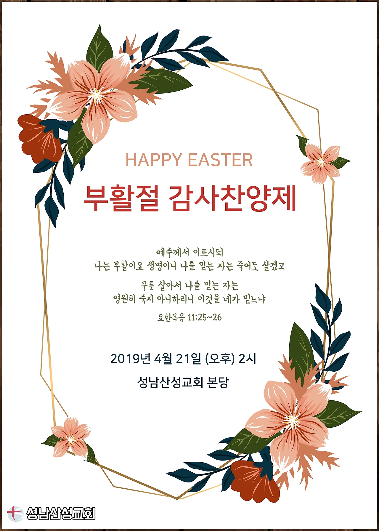 예수님의 고난주간에예수님의 부활을 바라봅니다..나를 위해 물과 피를 흘려 죽으시고 다시 부활하신 주님만이 유일한 소망이십니다..감사합니다. 사랑합니다.오늘도 주님을 바라봅니다..#성남산성교회 #부활절감사찬양제#고난주간에 #부활절을 #바라봅니다#감사합니다 #사랑합니다 #한찬송