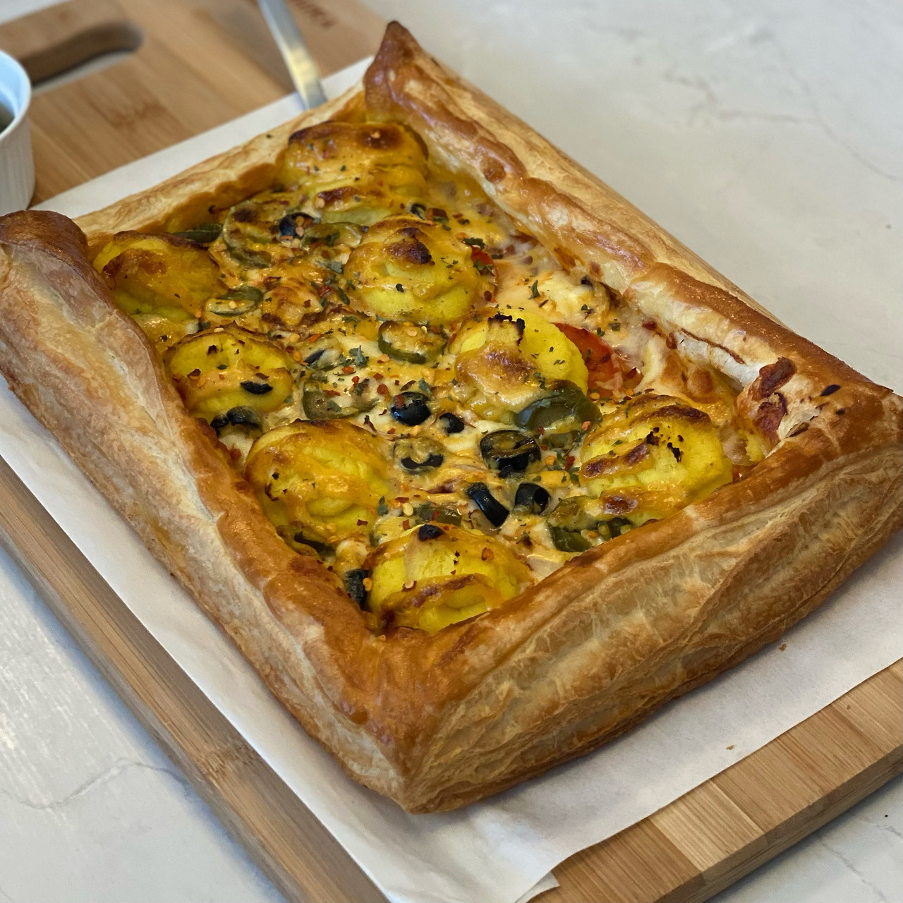 집에서 먹다간 큰일날 것 같은 패스츄리 도우. 달콤한 고구마 무스 아래에는 짭짤한 페퍼로니가 한 장씩 깔려있고 중간중간 할라피뇨도 끼어있어 지루하지가 않다.