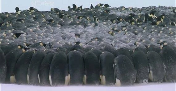 펭귄들은 남극의 추위를 견디기 위하여