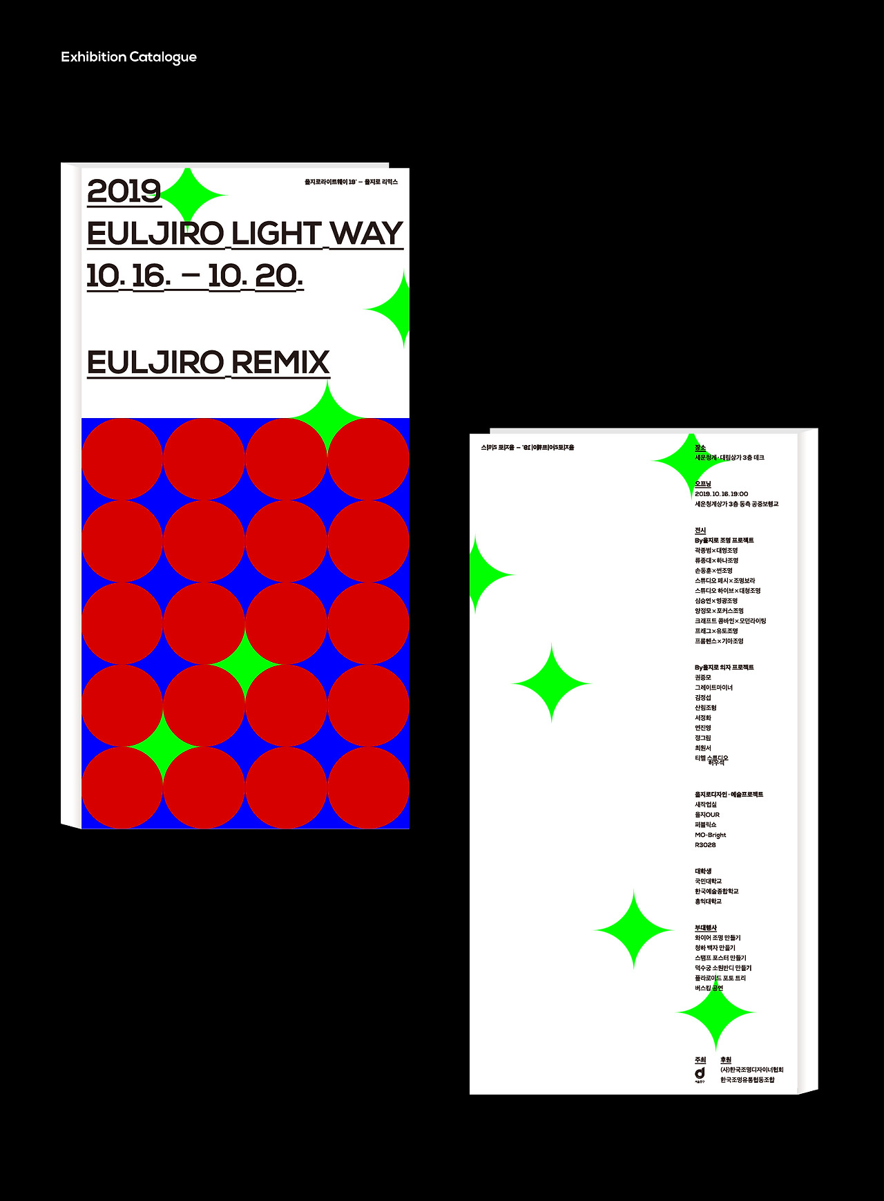 소동호 작가가 아트디렉터를 맡았던 by을지로 2019 도록(좌), 전시 전경(우) Ⓒ소동호
