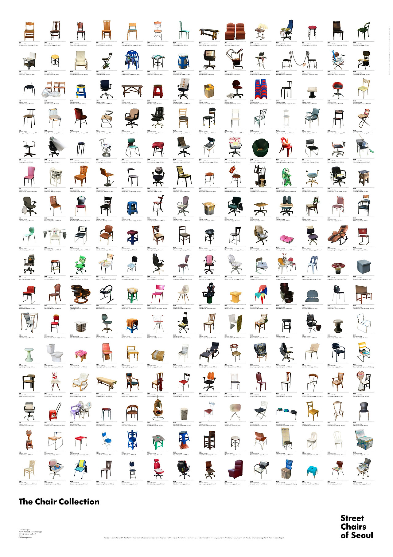 늘 ‘좋은 디자인’, ‘명작'의 자극에 노출이 되어 있다 보니 시선을 조금씩 돌리기 시작했던 것 같아요. 그렇게 ‘서울의 길거리 의자들' 프로젝트를 시작하게 된 것 같아요. 다 같은 의자이고, 어떠한 재료나 기법에 의해서 만들어진 의자인데 이게 디자이너의 손을 떠나 거리의 실사용자들에 의해서 변형되어 만들어진 형태, 색, 기능들이 굉장히 신선했어요.