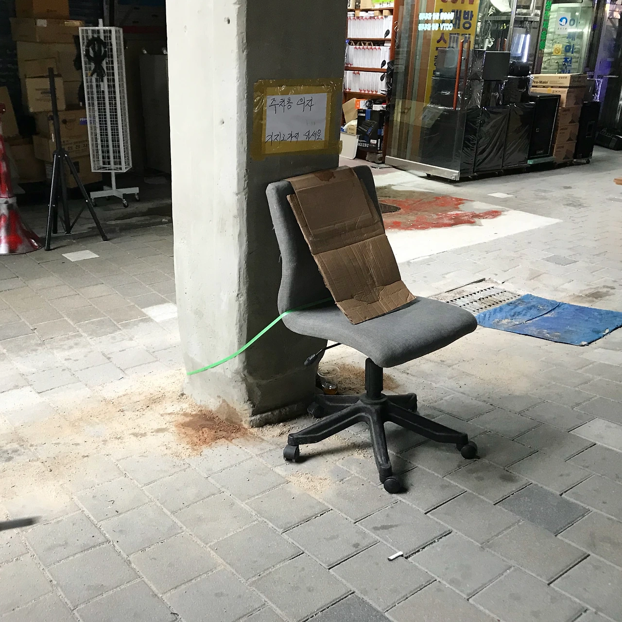 특히 을지로, 종로 지역에서 발생되는 의자들을 중심으로 발견하고 수집했어요. 2015년 을지로에 작업실을 만들기 전부터 길거리 의자들에 흥미를 느껴 간헐적으로 기록해 왔었어요. 작업실이 이 지역에 생긴 이후론 더 본격적으로 기록하기 시작한 것 같아요. 2017년부터는 서울의 길거리 의자들을 아카이빙 자료로 남겨야겠다고 생각하게 되었어요. 그렇게 한동안은 계속 아카이빙만 했고 이 자료를 어떻게 써봐야겠다, 혹은 어떻게 내 작업에 녹여야겠다 등은 생각하지 못했어요. 수집 자료량이 많아지고 시선이 확장되면서 어떻게 해보면 좋겠다는 생각이 들기 시작했고 그렇게 가지가 뻗어 나오게 되었어요.
