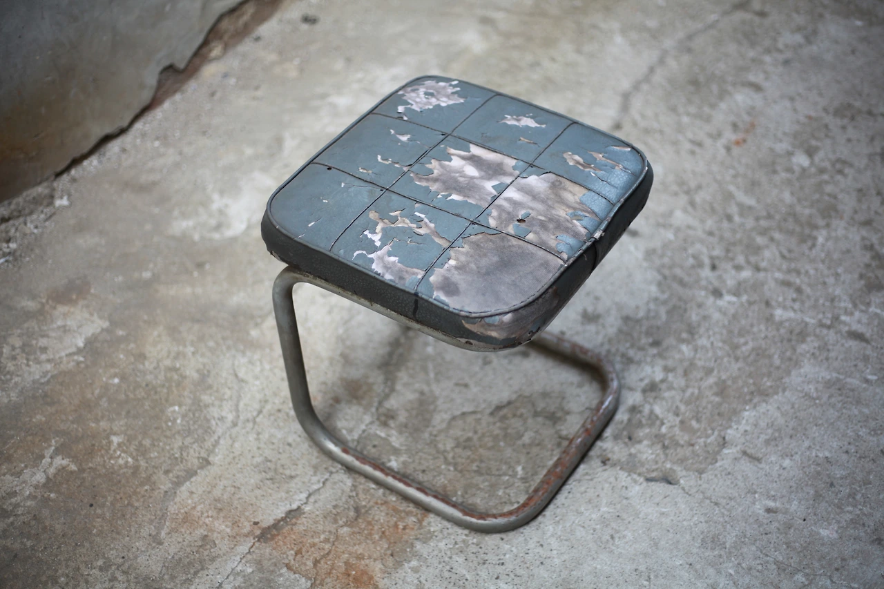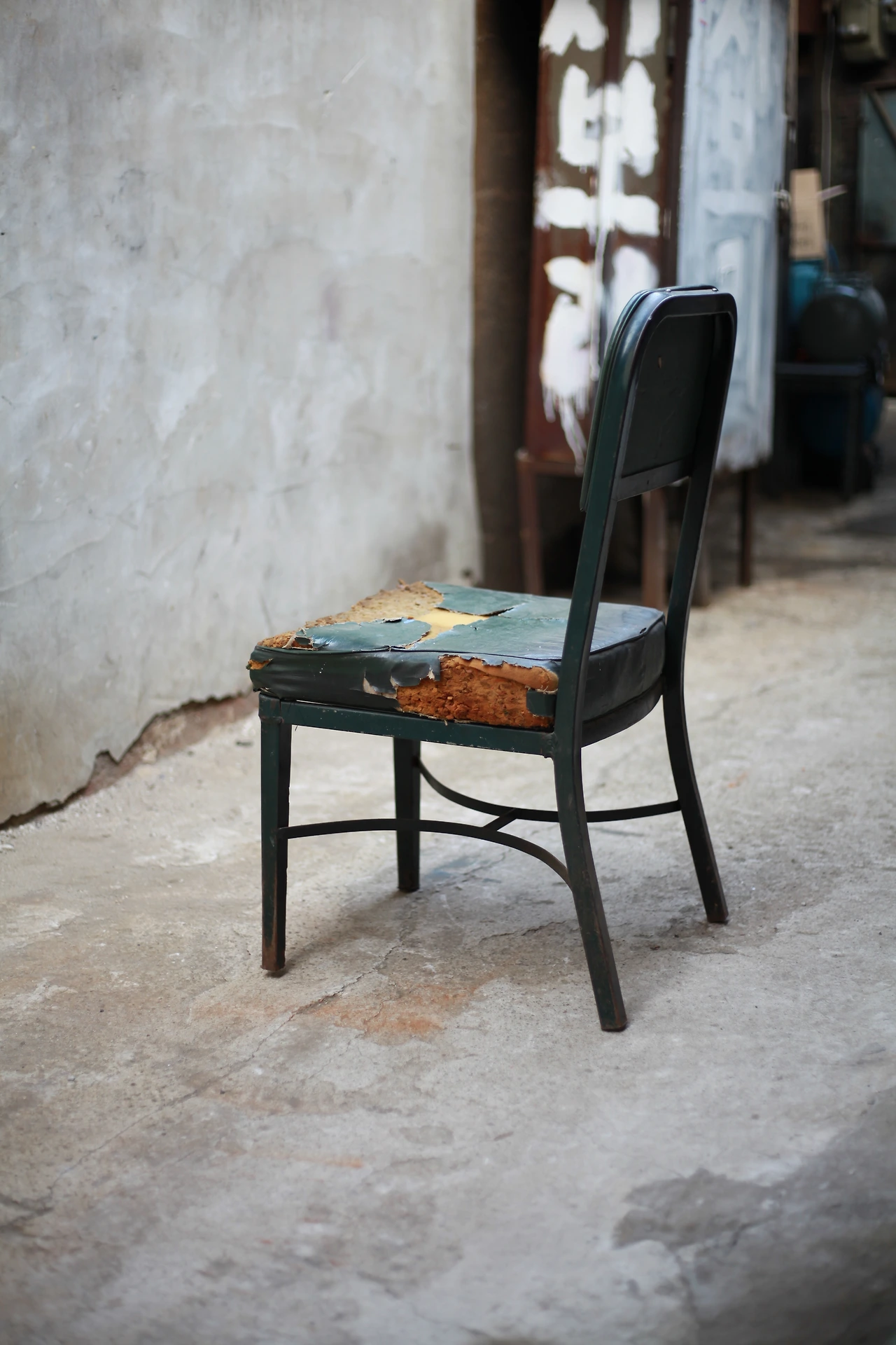 첫 작업실에 버려져있던 낡은 의자였어요. 인조가죽도 찢어져있고, 앉기엔 너무 낡고 오염이 되어 있었어요. 그 부분만 수리해서 지금까지 사용하고 있어요.