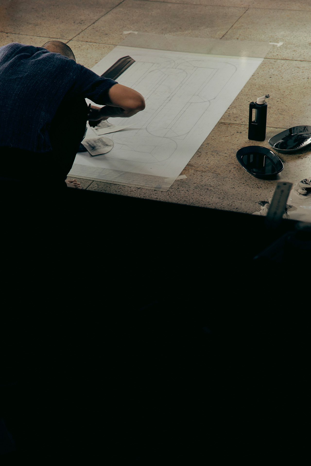 I've always found myself drawn to expressing something within a square. To me, the square feels like the most accommodating shape, capable of encompassing countless forms. I've already regarded the square as inherently balanced.《Track》begins with creating a blueprint on graph paper, structured around a vertical rectangular shape. It’s like stimulating both action and conflict; or, to say, causing friction in a well balanced square.