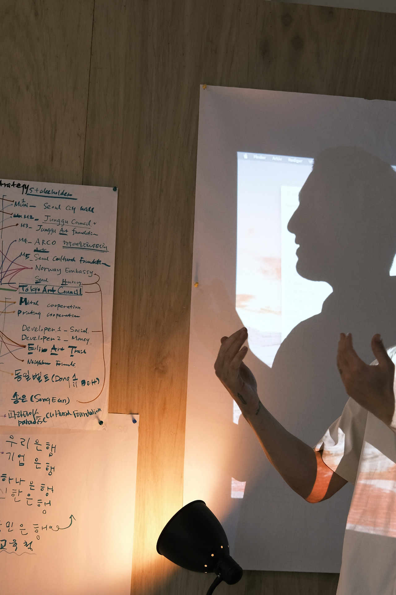 서로의 접근 어려운 구조는 바로 인근에 서로 시너지를 낼 수 있는 동료가 있어도 어떤 사람이 있는지, 어떤 프로젝트를 하는지 알기 어렵습니다. 다만, 인스타그램 계정을 팔로우하고 있다면 소식은 얻을 수 있습니다. 그래서 그는 서로의 소식을 더 잘 알 수 있고, 자신의 이야기를 또렷하게 외부에 전달하기 위해 소식을 공유할 물리적 공간이 필요하다 이야기했습니다. 더불어, 이를 통해 지역을 향유하는 관람객/방문객/소비자가 을지로를 더 잘 찾아오고, 예술가 혹은 예술 공간에 대한 이해도를 높여 향유자로서 도시를 경험하게 하는 안내자의 역할도 해줄 수 있을 것입니다.