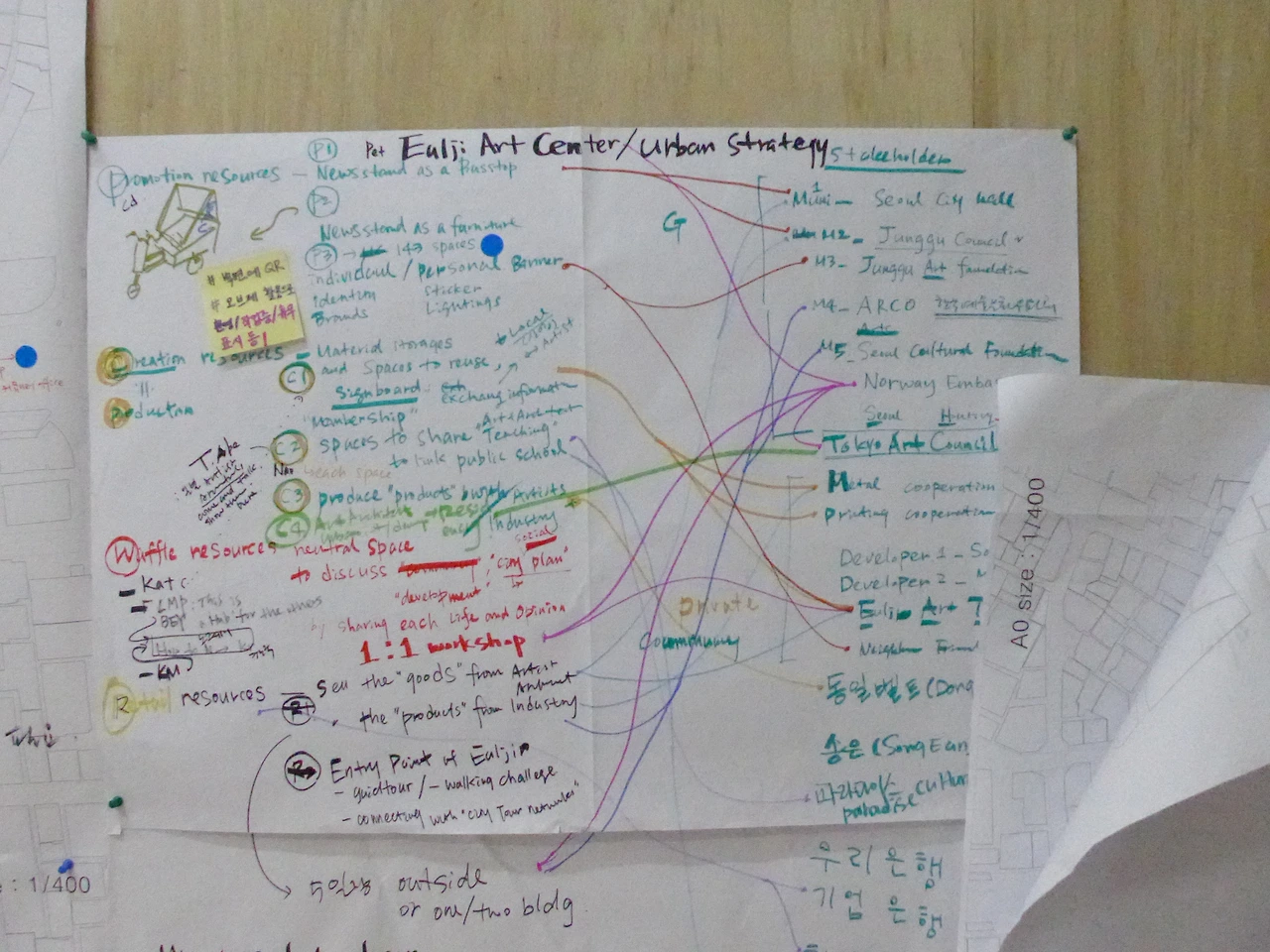 이를 위해 을지로의 예술가/예술공간이 만들기 시작한 「을지아트트레일 EAT」의 취지와 가능성을 소개하며, 향후 이것이 고화되고 지속되기 위해 물리적 인프라인 사무국 사무실, 안내센터, 기념품샵 등의 필요성도 함께 제안했습니다.
