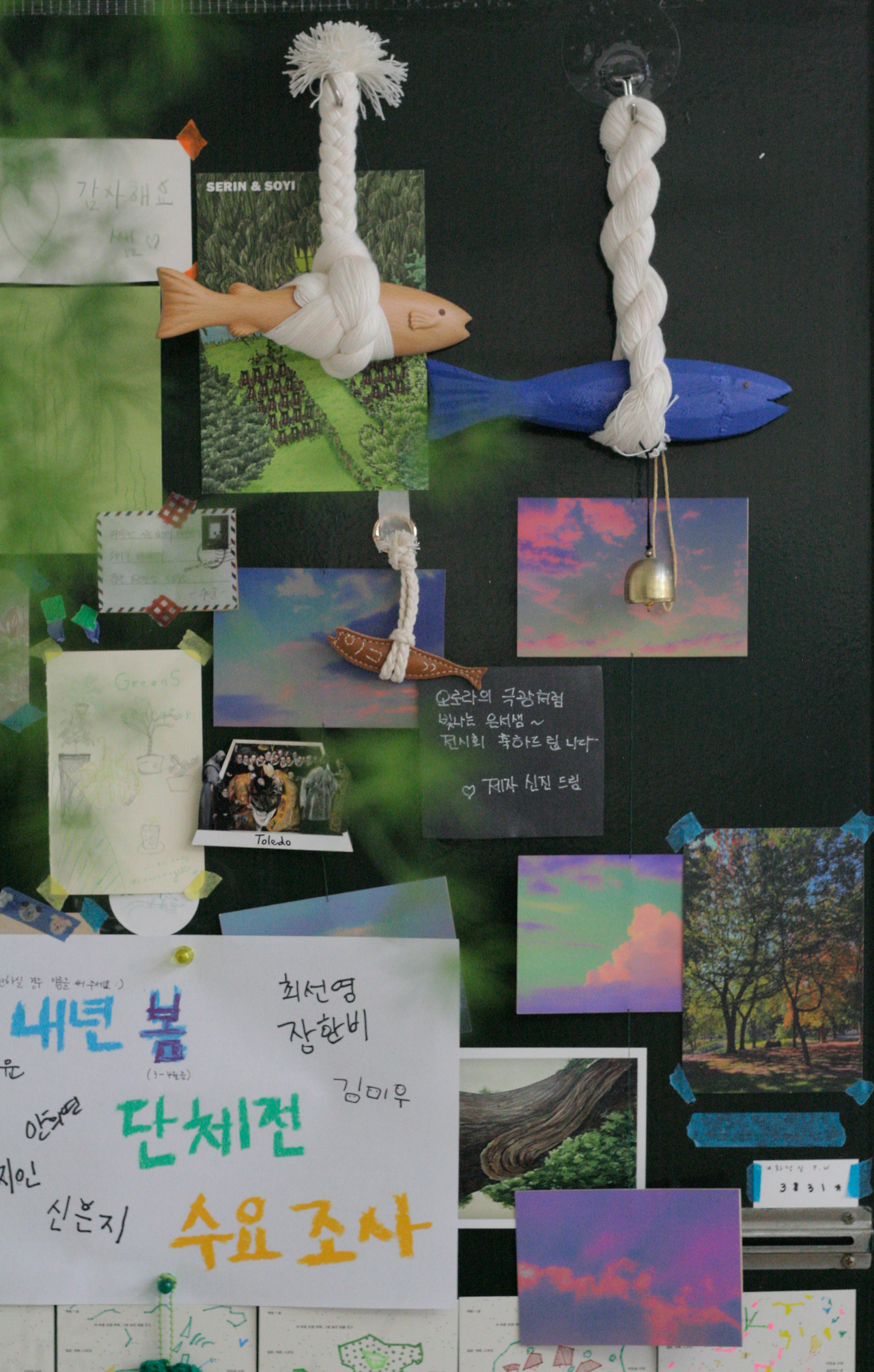 여러 사람들이 남기고 간 마음들이 문에 붙어 있는 걸 보니, 사람들과 함께 잘 어울리실 것 같아요.