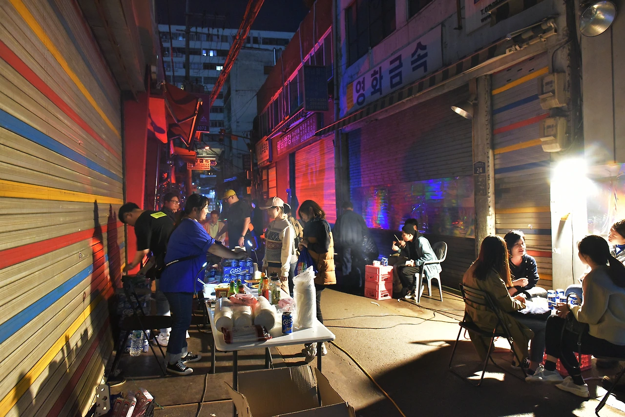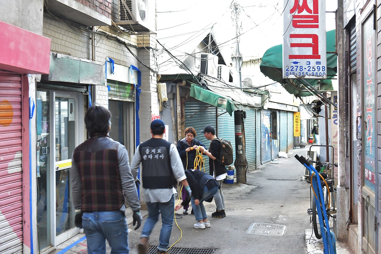 그렇게 오후 6시. 설치는 완료되지 못했고 현장은 여전히 수선했습니다. 복잡하고 이해관계가 많았던 골목은 항상 우리의 계획에 순응해주지 않았습니다. 그날도 마찬가지였습니다. 설치 속도는 예상에 미치지 못했지만 현장에 있는 이들이 지역 구조에 대한 이해가 높았기에 큰 사고는 없었습니다.