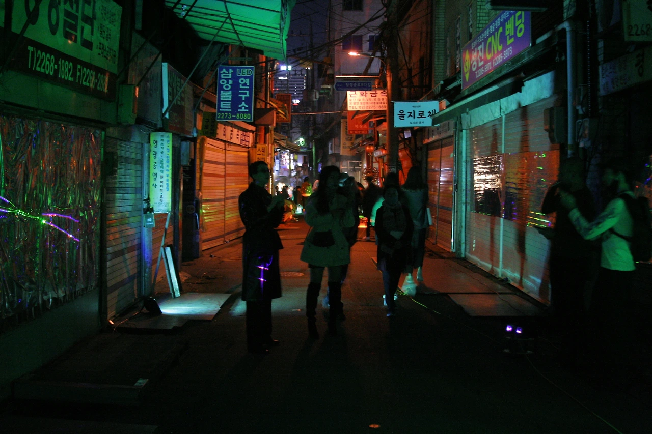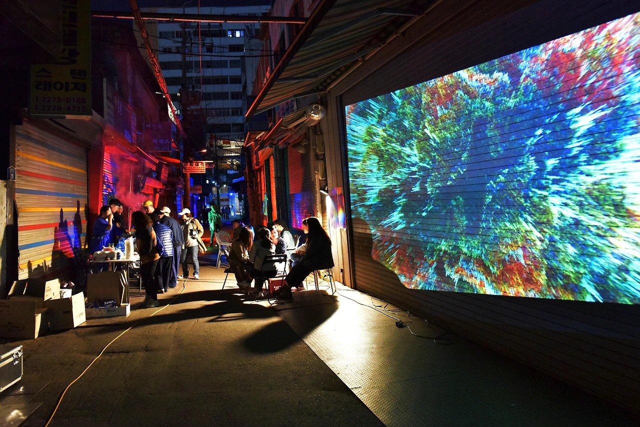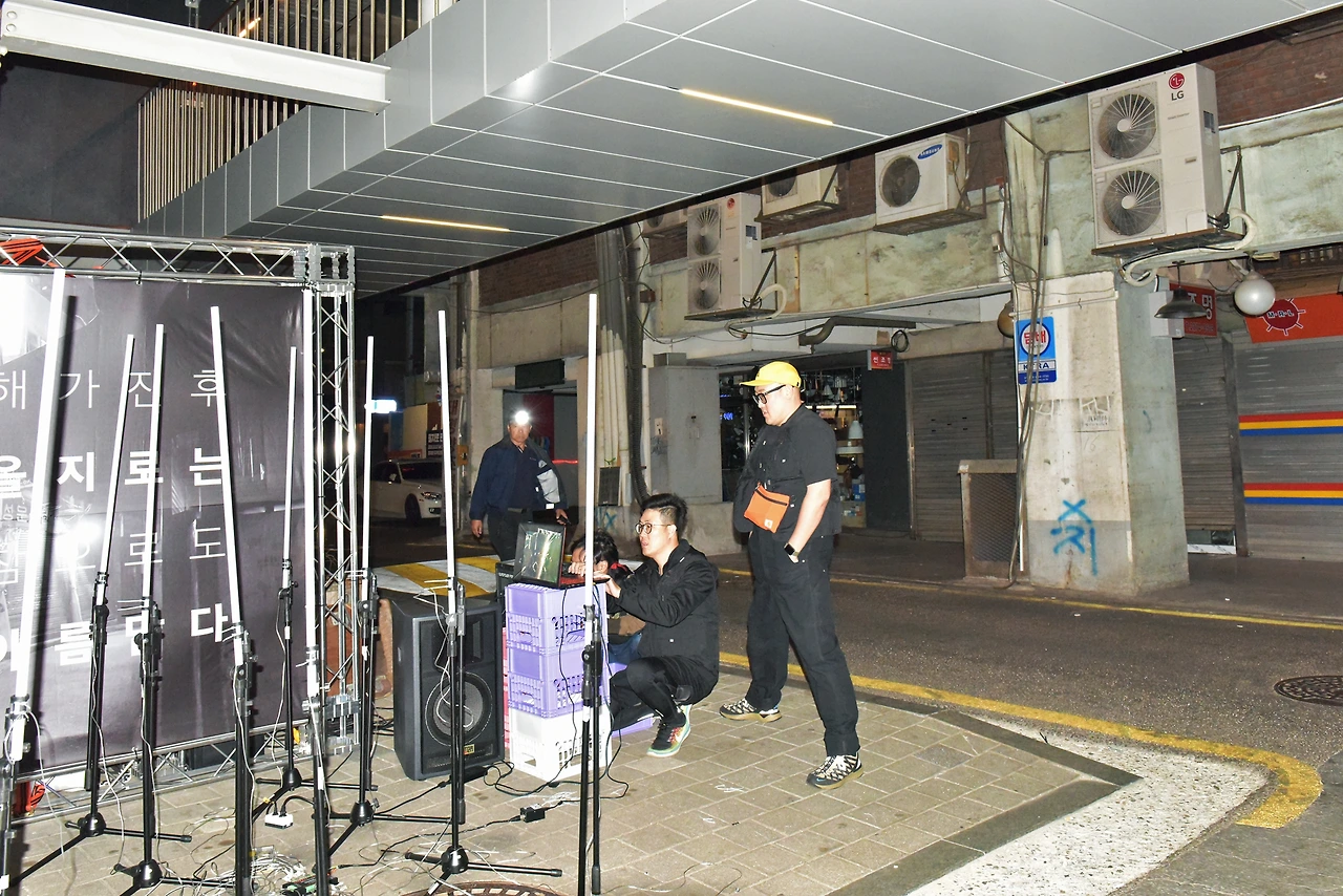 낮에만 살아 있는 거리, 해가 지면 적막감이 공기를 타고 무겁게를 더하는 거리, 산업으로 살아 있는 마을. 은은히 퍼지는 쇠 냄새의 골목은 하룻밤 새 옷을 입을 수 있었습니다. 거친 건물 외벽 위를 덮은 빛은 공간을 다르게 감각하게 만들었고, 공기를 타고 흐르는 음악은 사람들이 모여들게 하였습니다. 짧은 6시간 남짓 모습을 바꾸었던 거리는 공간에 있던 이들에게 장소가 되었습니다. 기억은 전환되어 그 공간에 있었던 모든 이들에게 추억이 되었습니다.
