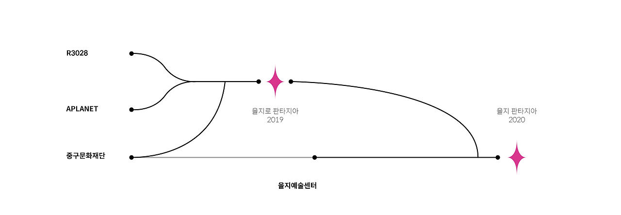 2019년 서울 중구청은 을지로의 예술가(초콜릿, R3028)와 함께 서울시 『예술거점활성화지원사업』 기획을 함께하였습니다. 을지로라는 지역이 담고 있는 문화 잠재성과 많은 시도들에 대해 정리했고, 지역에서 발견했던 가능성을 양분 삼아 설계도를 만들었습니다. 서울 중구의회에서 개류하던 사업은 2020년 7월 실행될 수 있게 되었습니다.