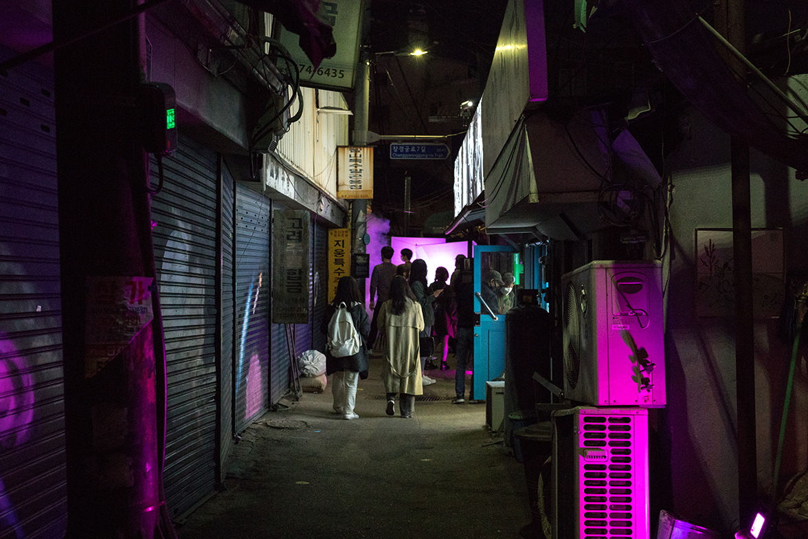 2020년 1월 16일 오후 6시반 골목애 들어서는 관객들의 행복한 모습을 통해 이곳이 다시 한번 다른 장소가 되었다는 것을 실감할 수 있었습니다. 짦은 시간 만나는 것이 허락된 사람들과 하룻밤 사이에 모습을 달리하는 장소에 들어서는 과정은 소중한 찰나가 되었습니다.