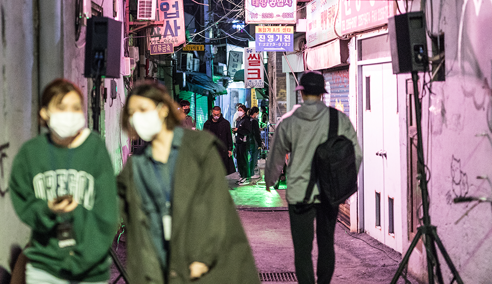 「을지판타지아」는 팬데믹 단계 완화에 이루어진 첫 문화 행사가 되었습니다. 입장시간을 기다리며 골목 초입에 길게 늘어선 사람들은 형형색색 빛을 발하고, 음악이 퍼지는 골목을 즐겼습니다. 마스크를 쓰고 있는 불편함이 있었지만, 단절의 시간이 느리게 갔던 만큼 골목에서의 감상은 더욱 소중했습니다.