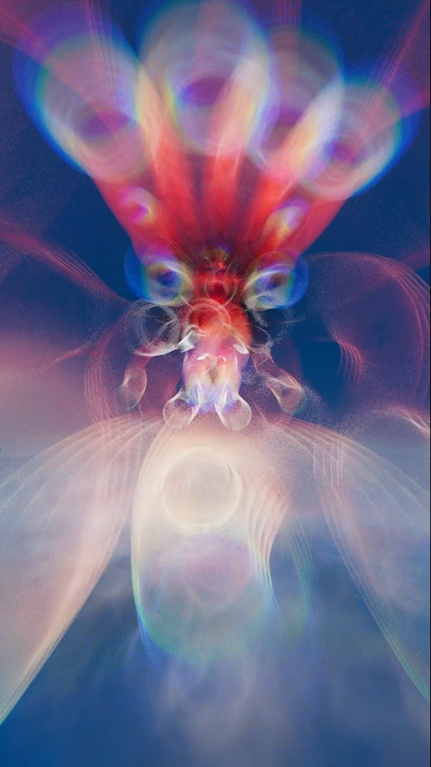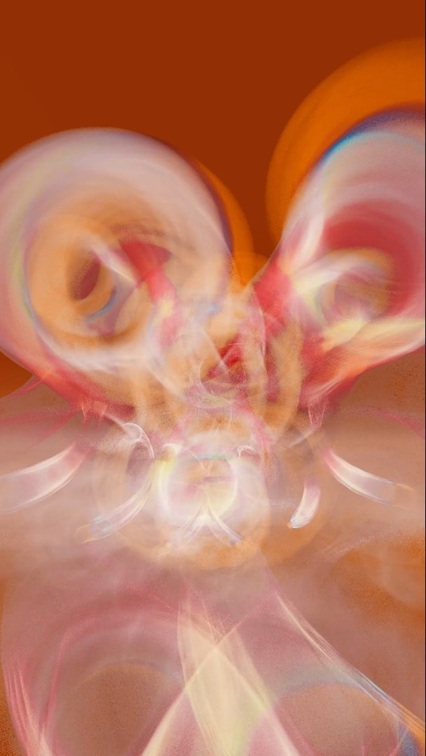 김을지로는 디지털 속 생명을 만듭니다. 이와 함께 뮤지션들과 협업하며 시너지를 도모하기도 합니다. 음악가 5명의 작업을 듣고 그로부터 연상되는 움직임에 맞춰 제작한 영상 중 영다이 작업에서 시작된 작품의 노을 빛 붉은색을 소개합니다.