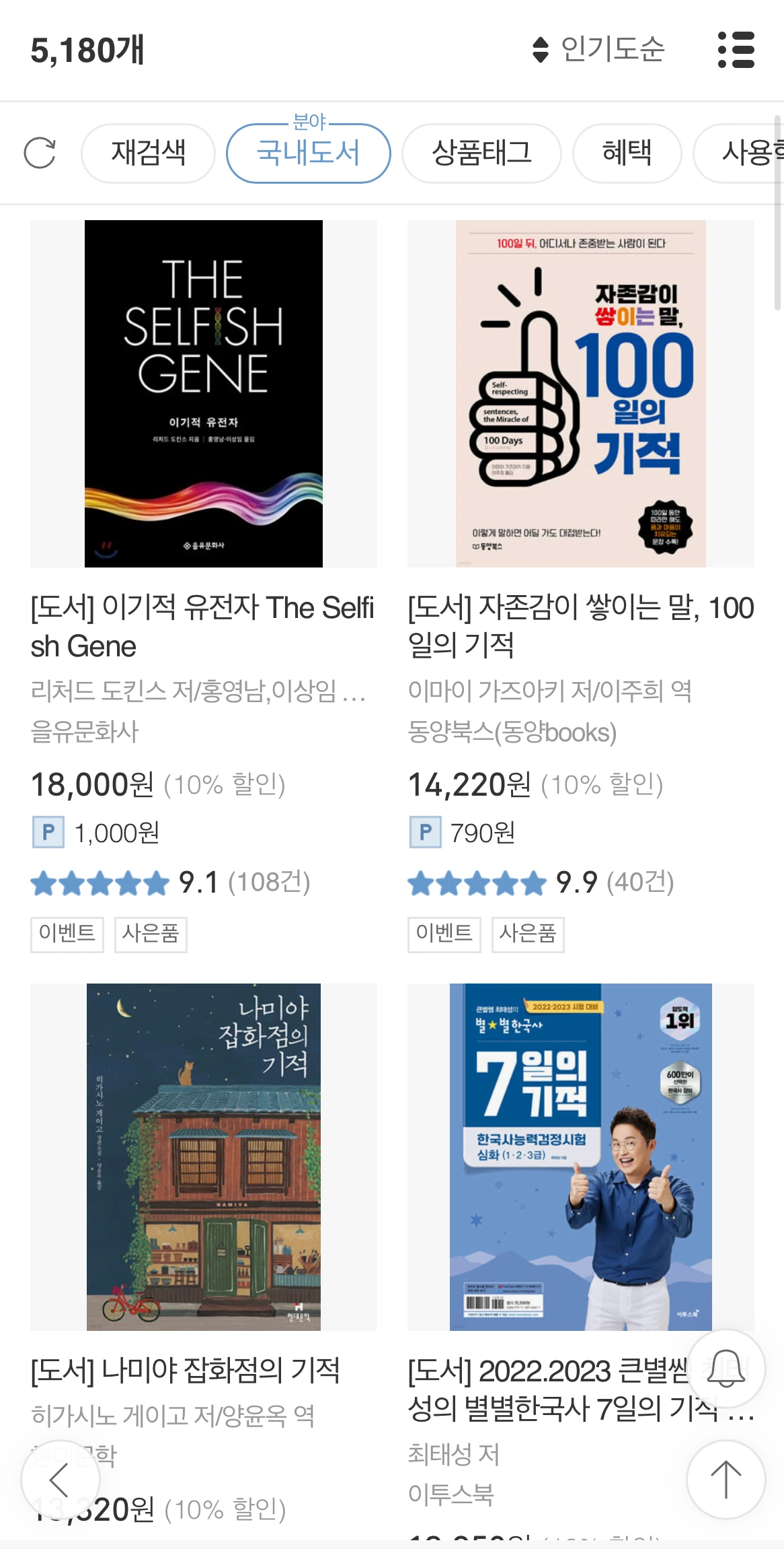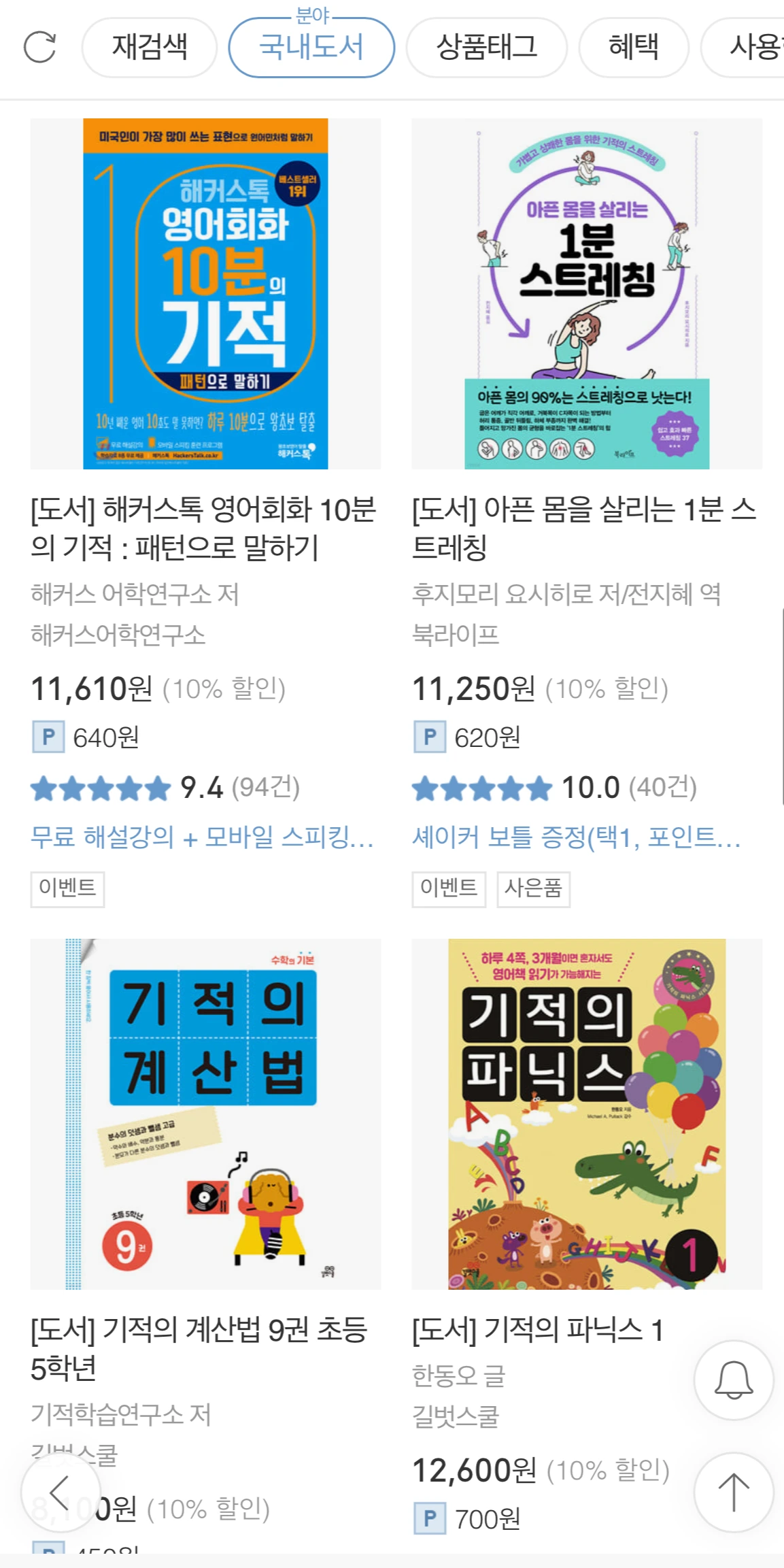 그래서 온라인 서점 사이트에서 한 번 "기적"을 검색해보았다.