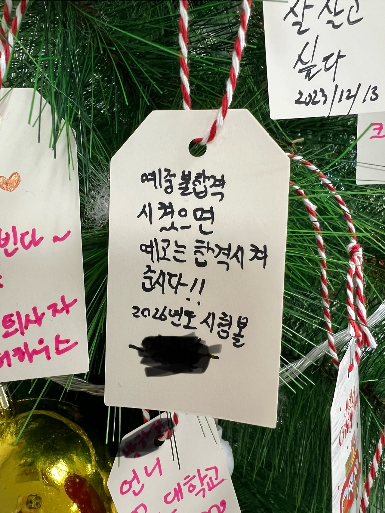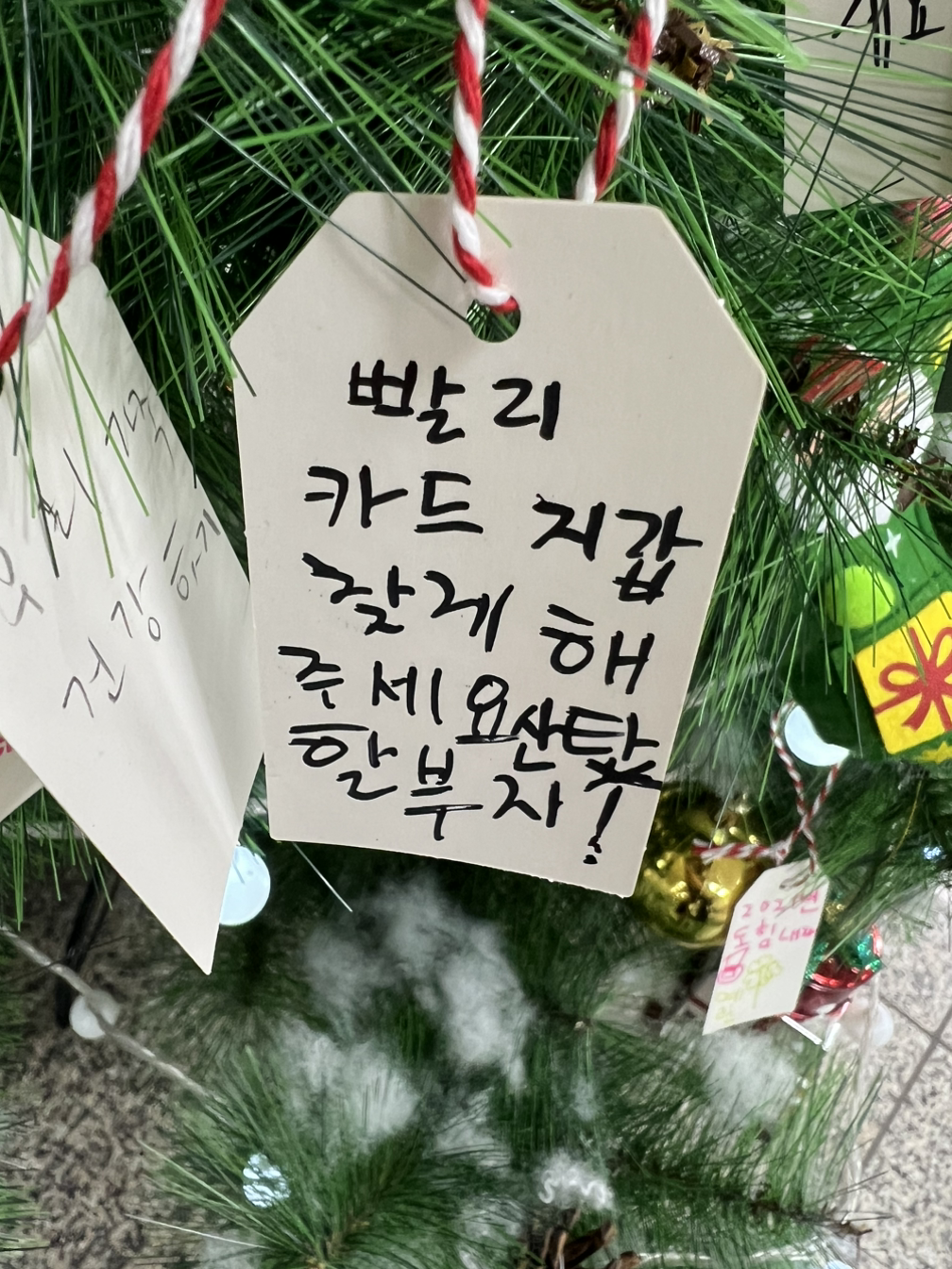 여러 소원 카드 중에서 내 눈을 사로 잡은건 트리 중앙을 근엄하게 차지 하고 있는 바로 이 카드였다..