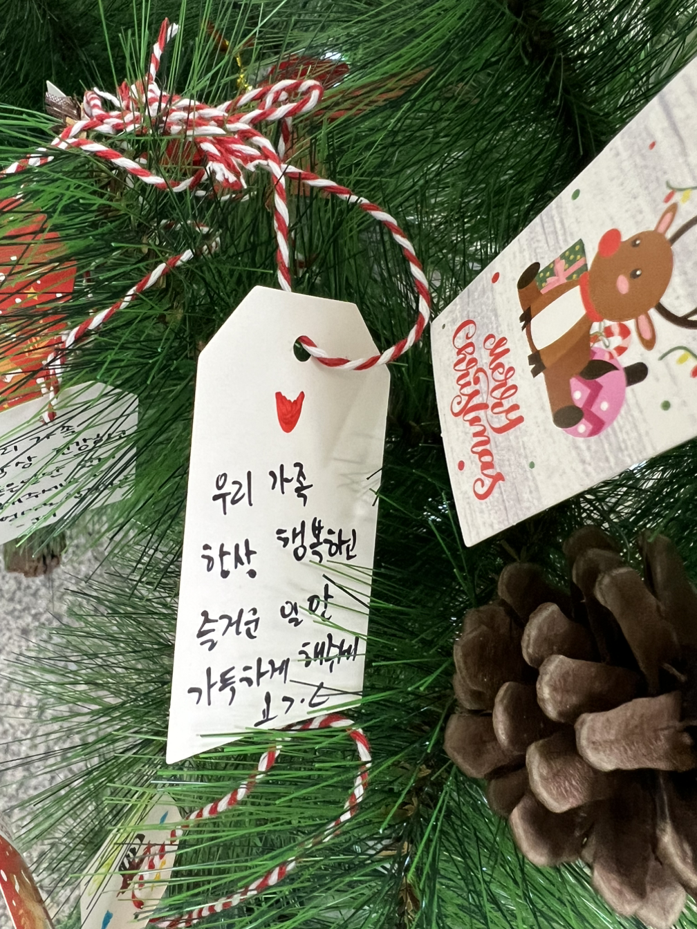 가만히 트리를 들여다보니 남들의 소원카드가 왠지 눈에 들어온다. 하나 하나 읽어보니 재미있다. 글씨체와 각자의 바람에서 나이대가 예측되기도 한다.