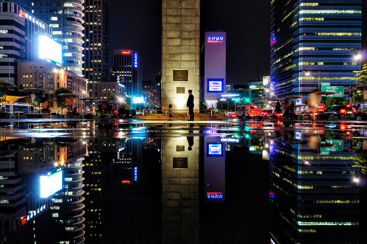 그 '순간'이었다. 바람에 집어진 우산을 접고 달렸던, 그래서 내리는 비를 그대로 맞고 있음에도 순간에 이상한 에너지가 들이찼다. 왠지 모르지만 그 짧고 정신없는 그때, 광화문 광장을 돌아봤다. 그 순간, 신기하게도 정말 슬로우 비디오처럼 한 프레임 한 프레임씩 광경이 보이기 시작했다. 내리는 비와, 푸른 광화문 광장과, 하나 둘 불을 밝히던 빌딩들 사이에서. 나로서는 처음 경험하는 시간을 잃은 순간이 정말 또렷하게 느껴졌다. 글로는 형용할 순 없는 횡단보도의 녹색 바가 몇 칸 남지도 않았던 그 순간이, 정말 영원처럼 느껴졌다.