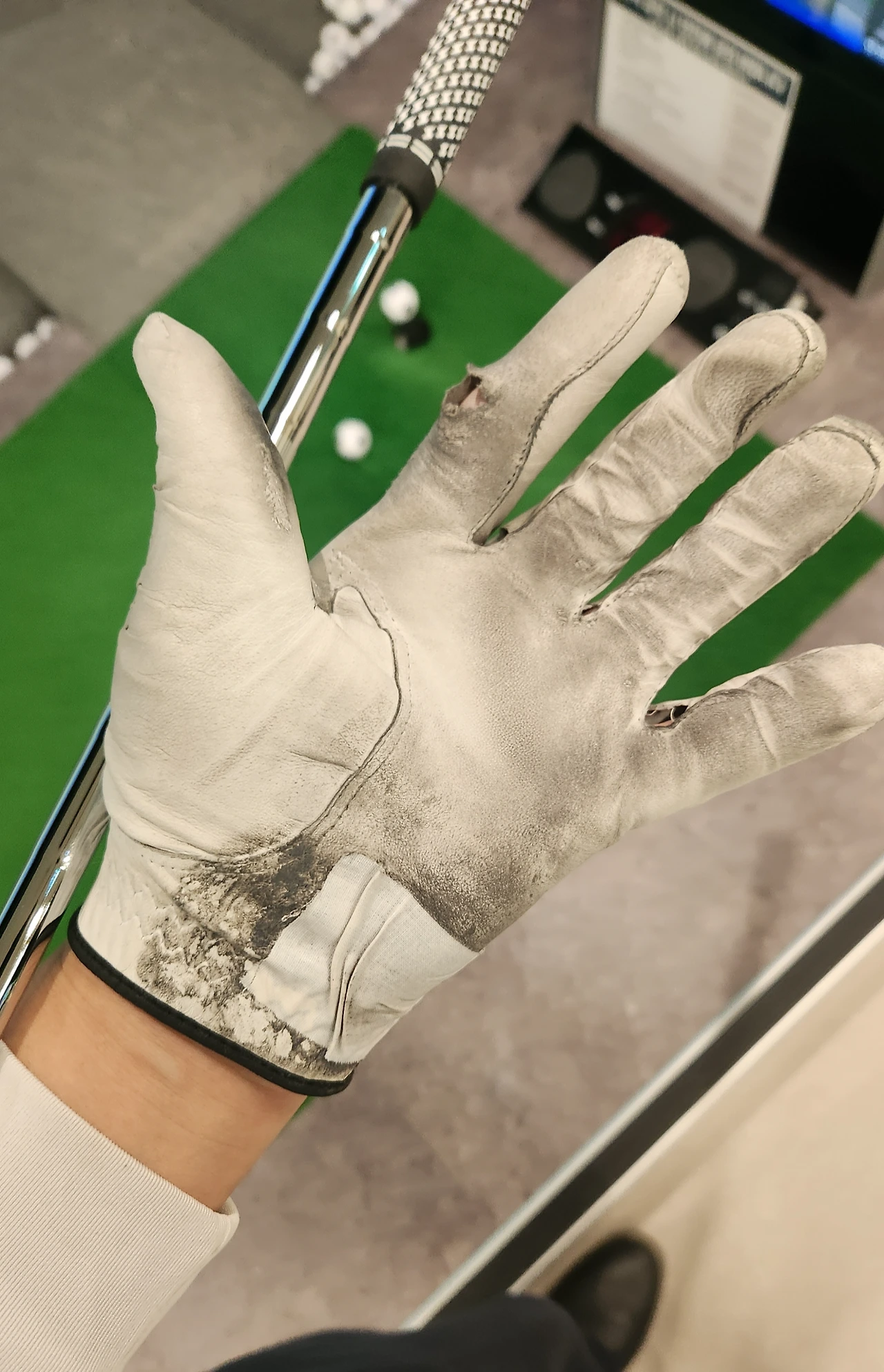 나의 '버리기 싫어' 시리즈 글을 보신 분들은 아시겠지만. 이렇게 까지 했던 건 꼭 돈 때문만 만은 아니다. 그러나 골프 가죽 장갑은 꼭 저 한 군데만 구멍이 나서 마음을 아프게 하곤 했다. 어떻게 저 구멍 하나 때문에 멀쩡한 장갑을 버릴 수 있단 말인가? 저렇게 한 부위만 계속 구멍이 나는 건 일단 골프 그립을 제대로 못 쥐어서 그렇다.. 고 한다. ㅜㅠ