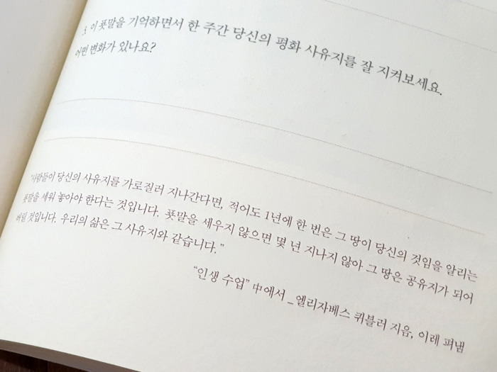 처음 도서관에서 2차, 3차시 특강해주셨던 선생님의 책을 빌려서 봤을 때도, 내가 20대 때 자주 봤던 흔한 자기개발서라고 생각하고서 책장을 슥슥 넘겼는데, 책을 쓰신 선생님의 수업을 들으며 책장을 넘기니, 내가 지레 짐작했던 것과 다르게 나에게 더 많이 다가왔다. 적어도 전업주부가 되면서 애써 나를 덮어두며 살아가는 나에게는 그랬다.