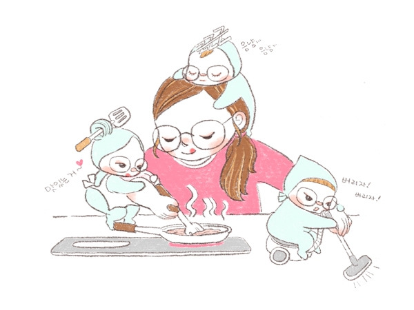 도서관에서 그림책 만드는 수업을 들으며 간절한 세 가지 욕구가 스멀스멀 올라왔다. ‘잘 먹고 싶다, 잘 자고 싶다. 집을 비우고 싶다.’ 그래! 나는 7개월 동안 매일 새벽 1~2시까지 19장의 그림에 허덕이면서 깨끗한 집에서 간절히 잘 쉬고 싶었다! 그래서 어찌어찌 한 곳만 구멍 나게 후벼판 그림책을 끝내자 삼일 정도는 자신에게 강제로 밤에 푹 자게 했고, 매끼 먹고 싶은 음식들을 머릿속에 떠올려 맛을 상상하고 골라 뜨끈한 밥상을 차렸다. 그런데 이렇게 인간의 기본 욕구가 충족되자 마지막 욕구인 집 비우기를 안 했는데 다시 쓰고 그리고 싶은 욕구가 생겼다. 내가 그림책을 그리는 동안 집에만 들어오면 여기저기 쌓여있는 물건들에 스트레스받는다며 길길이 날뛰던 남편에게 그림책만 끝나면 싹 다 버리겠다고 큰소리쳤는데 지금의 나는 아이들을 유치원에 보내놓고 도서관에서 빌려온 에세이를 보며 이렇게 글을 쓰고 있다.