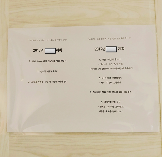 늘 내일은 더 괜찮은 사람이 되고 싶다. 물론 ‘괜찮은 사람’에 대한 기준이 모두 다르겠지만, 남편과 나는 이것을 위해 두 가지를 고민한다. 매년 1월 1일. 우리는 소중한 사람과 더 괜찮은 날들을 보내기 위해, 그리고 내가 나를 더 괜찮은 사람으로 만들기 위해 계획을 쓰고 붙인다.