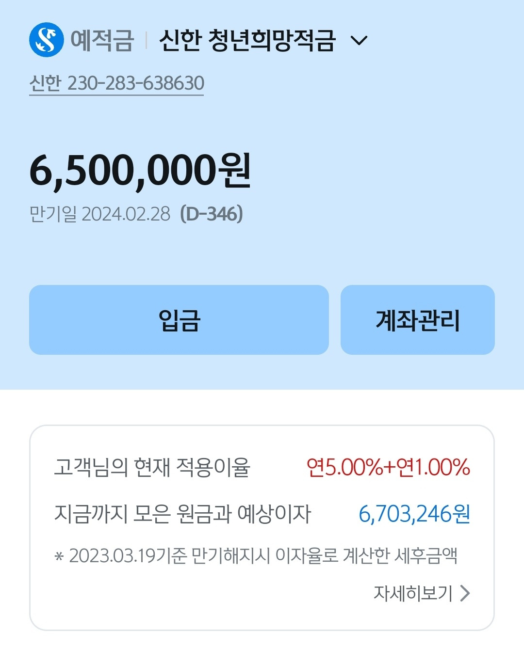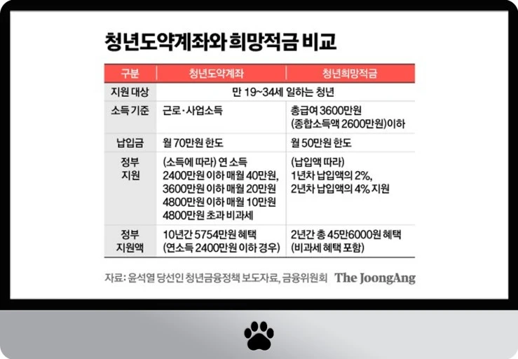 너무나 유명한 상품이다. 나는 2021년 11월부터 가입하여 적립금을 채워나가고 있다. 하지만 올해부터는 건설업과 제조업 직종에 취업한 청년만이 가입할 수 있도록 사업이 많이 축소되어 무척이나 아쉽다. 청년정책은 이처럼 타이밍이 매우 중요하다. 가능한 한 이러한 사업이 있다는 걸 인지하는 즉시 행동으로 실천하여 수단과 방법을 가리지 않고 자신의 밥그릇을 챙겨야 한다.