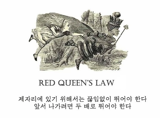 나를 제외한 모든 만물과 존재들이 달리고 있기 때문에, 똑같이 뛰어야 겨우 현상유지를 할 수 있다는 역설을 담은 용어야. 하나만 분명히 할게. 나는 자기계발 만능주의를 말하려는 건 아니야. 그보단 무작정 '욜로'나 '현재를 즐겨라.'라고 손쉽게 외치는 건 무책임한 일임을 지적하고 싶은 거야. 그런 삶이 어떻게 지속가능하겠어? 우리는 팍팍한 현실을 꿰뚫어 좀 더 나은 미래를 만들 수 있는 해결책을 찾아야 하지, 현실에 눈 감고 환상을 살아서는 안 된다는 말을 하고 싶었어.